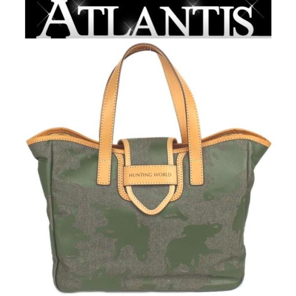 ハンティングワールド HUNTING WORLD トートバッグ グリーン キャンバス×レザー